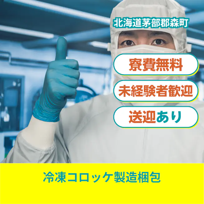 時給例:1183円 交通費 支給あり 応募の流れ 本ページ内<応募する>ボタンより、必要項目をご入力の上、ご応募ください。 勤務地 【勤務地】北海道茅部郡森町港町 勤務時間 【勤務地】①3:30~12:00②15:45~翌0:00③5:00~13:30④13:30~22:00⑤4:15~12:45⑥5:15~13:45⑦7:30~16:00※①②または③④の交替制、②⑤⑥⑦いずれかの固定勤務 必須資格 経験不問 福利厚生 ★社会保険完備、有給休暇制度有、通勤交通費支給、ワンルーム寮完備、赴任旅費支給、車通勤可、送迎バス有、制服貸与 ※勤務先による