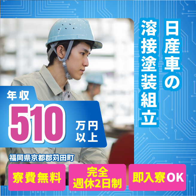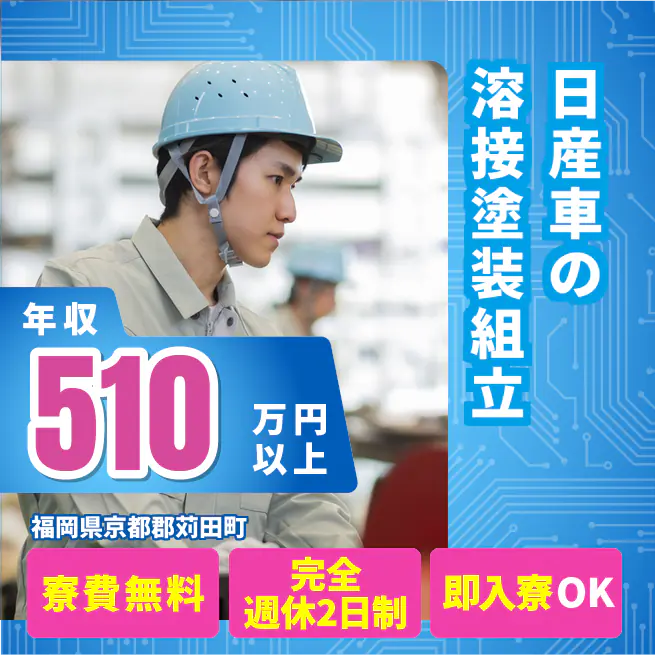 ・特になし 福利厚生 交通費:上限3万円迄/月 公開日 2025年02月01日 寮 部屋タイプ 個室寮 家具・備品 初めての一人暮らしでも安心♪生活に必要な備品はあらかじめそろっています。※寮による 家賃 無料 その他 寮周辺にはスーパーやコンビニもあり生活も便利!※寮による ★日払い制度あり!