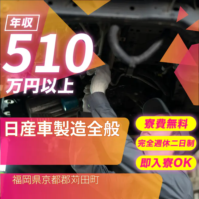・特になし 福利厚生 交通費:上限3万円迄/月 公開日 2025年02月01日 寮 部屋タイプ 個室寮 家具・備品 初めての一人暮らしでも安心♪生活に必要な備品はあらかじめそろっています。※寮による 家賃 無料 その他 寮周辺にはスーパーやコンビニもあり生活も便利!※寮による ★日払い制度あり!