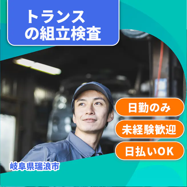※実際と異なるケースもございます。 交通費 支給あり 応募の流れ 本ページ内<応募する>ボタンより、必要項目をご入力の上、ご応募ください。 勤務地 【勤務地】岐阜県瑞浪市小田町 勤務時間 【勤務地】①08:30~17:20 休憩60分