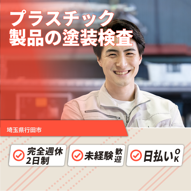 プラスチック製品の塗装マシンOP、材料の供給、目視や設備による検査業務。