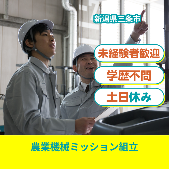給与詳細 月収例 208,000円 日給例 10,400円 勤務地 新潟県三条市 仕事内容 農業機械に使われるミッション工程での組立作業。