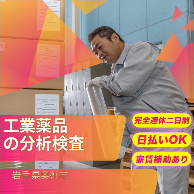 給与詳細 月収例 195,000円 日給例 10,400円 勤務地 岩手県奥州市 仕事内容 【工業薬品・試薬の製造】