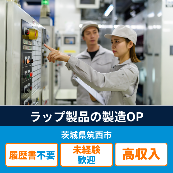 ラップ製品の製造機オペレーター(原料装着・運転)を行います。