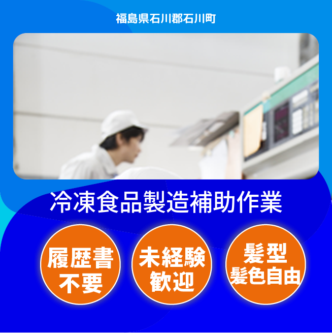給与詳細 月収例 207,000円 日給例 10,350円 勤務地 福島県石川郡石川町 仕事内容 食品工場内にて、冷凍食品の製造業務を担当していただきます。主な作業は、材料の準備・仕込み、盛り付けラインでの盛り込み、包装・箱詰め作業などです。そのほか、これらに付随する業務もお願いします。