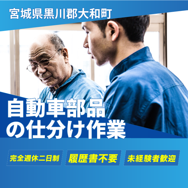 給与詳細 月収例 180,000円 時給例 1,200円 勤務地 宮城県黒川郡大和町 仕事内容 【業務内容】