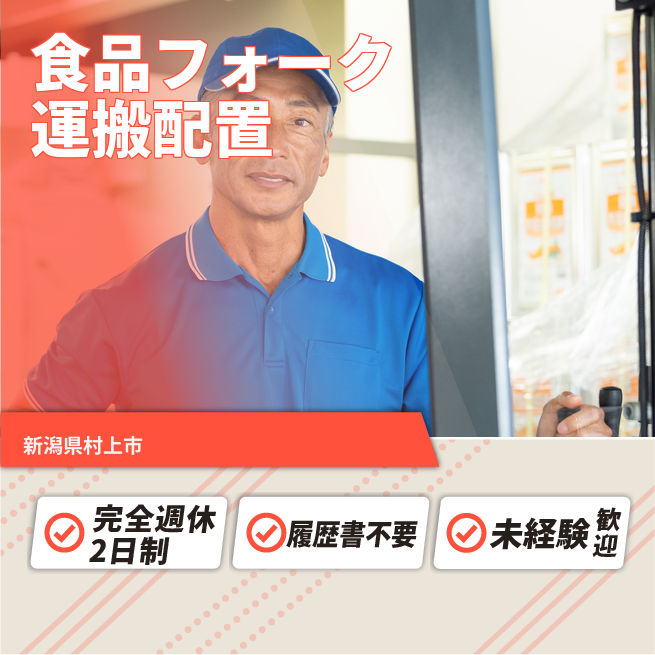 給与詳細 月収例 237,900円 時給例 1,220円 勤務地 新潟県村上市 仕事内容 食品製造工場倉庫内で完成品をフォークリフトを用いて運搬して頂きます。