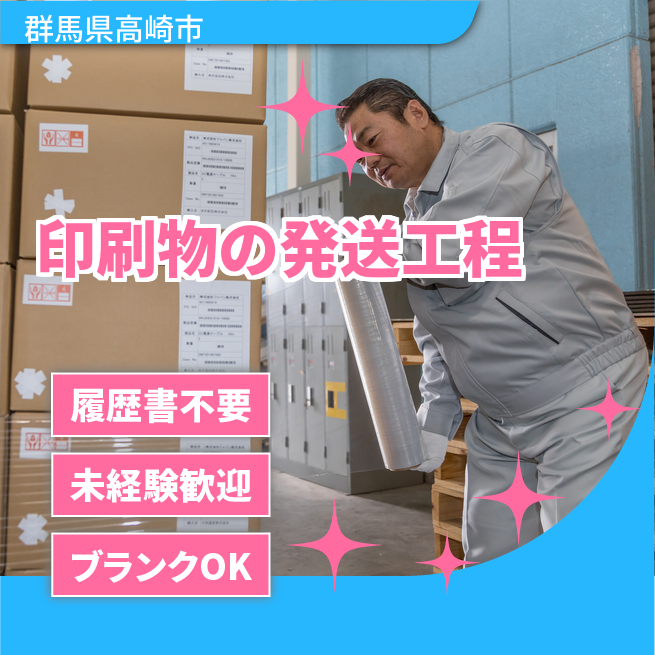 給与詳細 月収例 200,000円 日給例 10,000円 勤務地 群馬県高崎市 仕事内容 【業務内容】印刷物の発送準備と出荷作業
