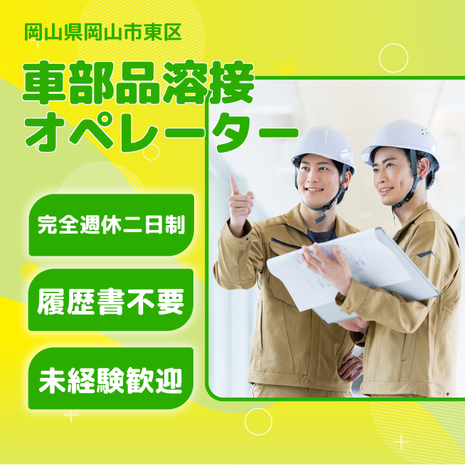 - 車用メタルパーツの溶接機械を操作し、正確に溶接を行う