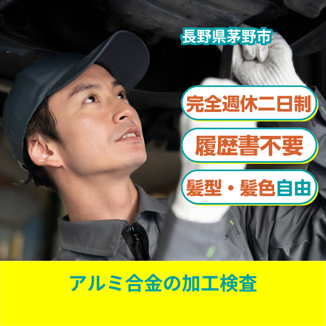 アルミ合金の金属加工機オペレーター・検査(交替/土日休)を行います。