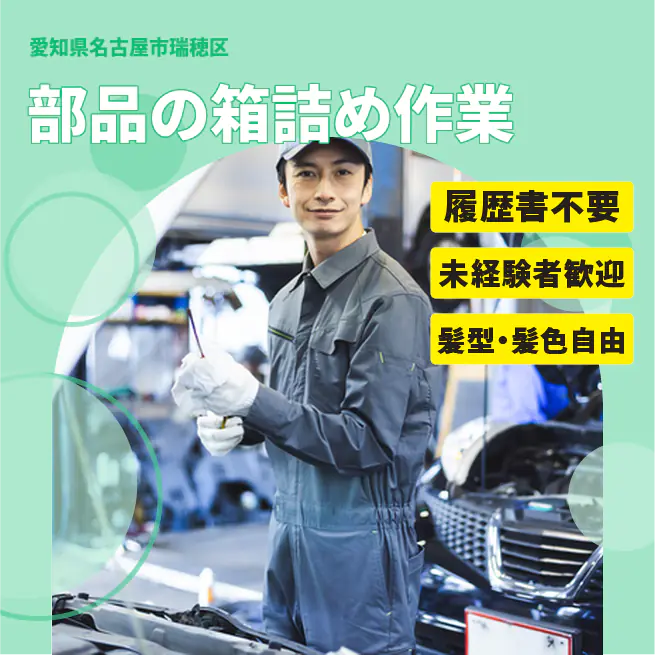 給与詳細 月収例 200,000円 日給例 10,000円 勤務地 愛知県名古屋市瑞穂区 仕事内容 【業務内容】金属部品のセットおよびばらし作業