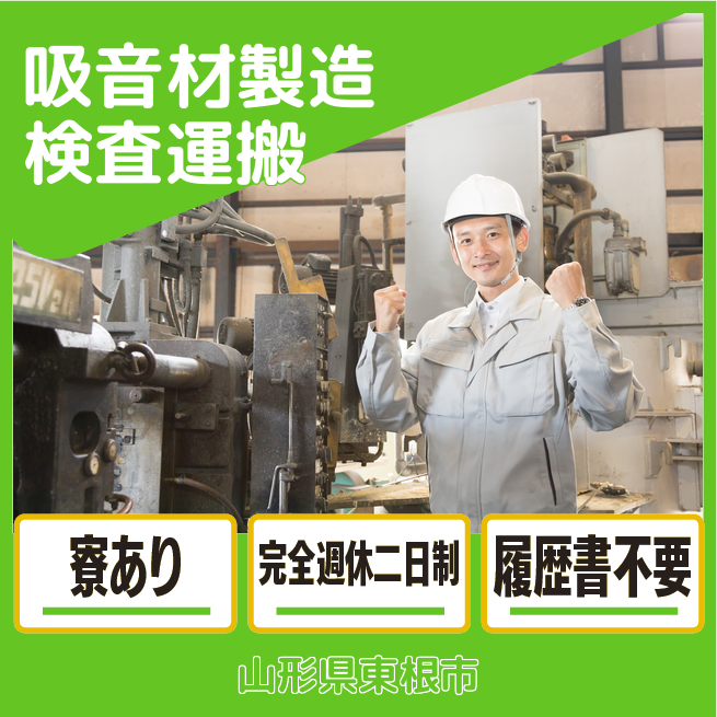 給与詳細 月収例 330,000円 日給例 16,500円 勤務地 山形県東根市 仕事内容 自動車の吸音材製造で、吸音材シート材料(高さ160センチ、重さ25キロ程)を資材室より引きずりながら機械にセットする、機械に型(30キロ程で2名作業)をセットしてプレスする、プレスした製品が機械から出てきたら余分なは材を取る。1台の機械を5名~6名の班で作業する。梱包、段取り。 目視検査