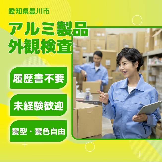加工されたアルミ製品の外観検査作業及び付随業務