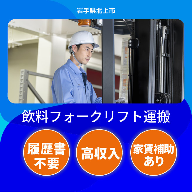 給与詳細 月収例 262,000円 日給例 13,100円 勤務地 岩手県北上市 仕事内容 ペットボトル運搬に関わるフォークリフト業務