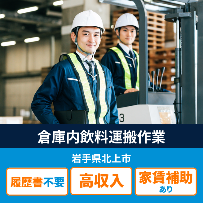 給与詳細 月収例 262,000円 日給例 13,100円 勤務地 岩手県北上市 仕事内容 【業務内容】