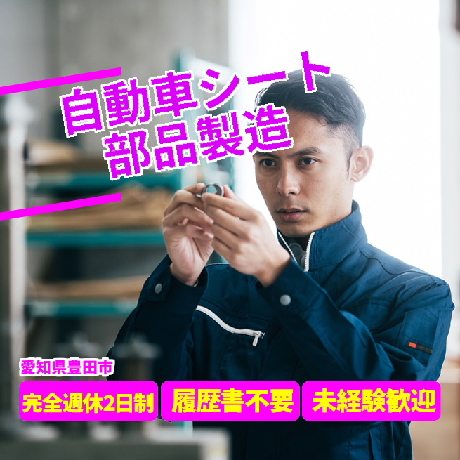 給与詳細 月収例 325,800円 時給例 1,700円 勤務地 愛知県豊田市 仕事内容 自動車シートのフレーム用部品すわる部分の製造です。