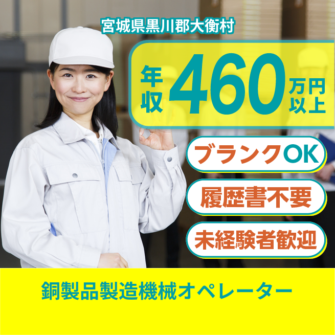 給与詳細 月収例 244,000円 時給例 2,000円 勤務地 宮城県黒川郡大衡村 仕事内容 通信機器、自動車、産業機械分野などに使われる銅製品の製造作業です。