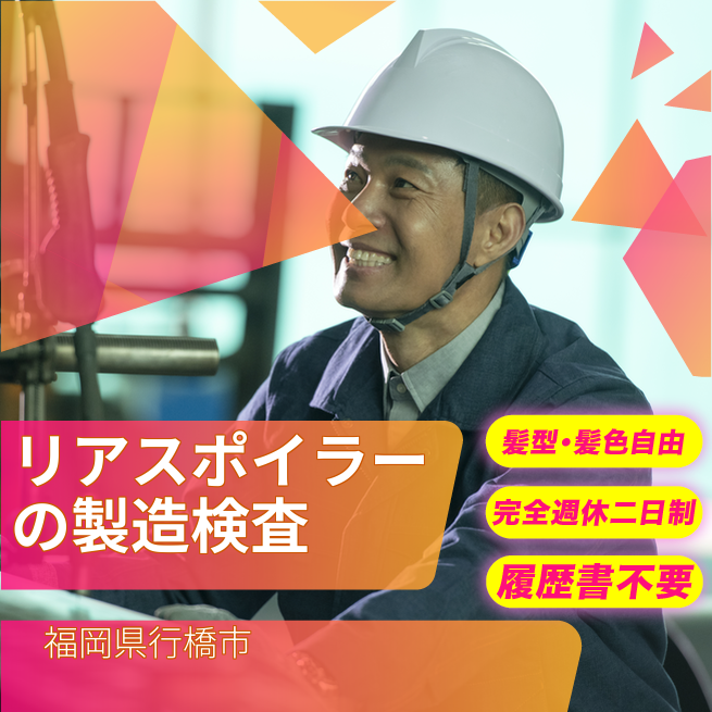 自動車リアスポイラーの製造(バリ取り・検査)を行います。