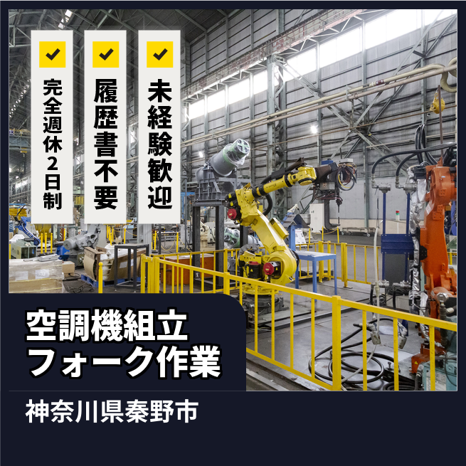 給与詳細 月収例 286,650円 日給例 11,760円 勤務地 神奈川県秦野市 仕事内容 大型空調機組み立ての仕上げ業務、