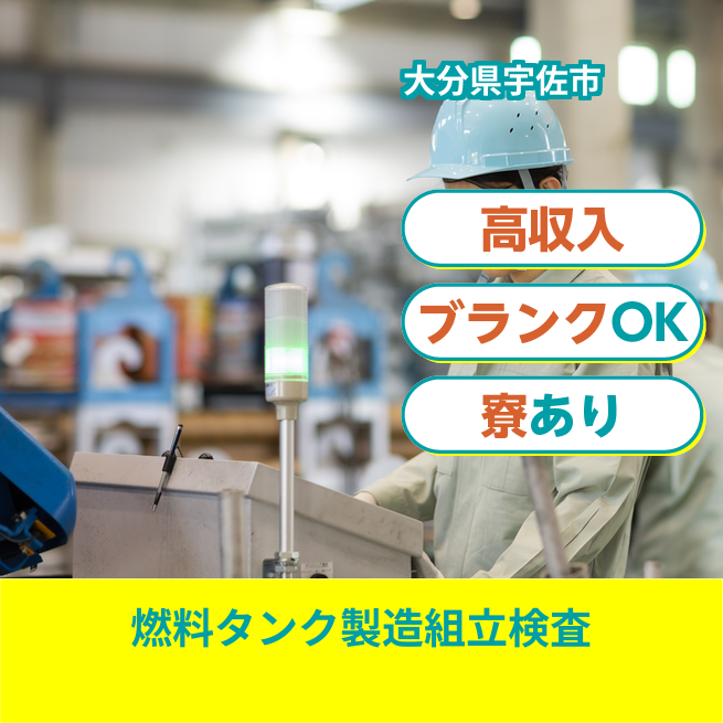 企業 FTS九州 給与詳細 月収例 270,000円 日給例 13,500円 勤務地 大分県宇佐市 仕事内容 ■燃料タンクの製造工程における組立・仕上げ・検査業務