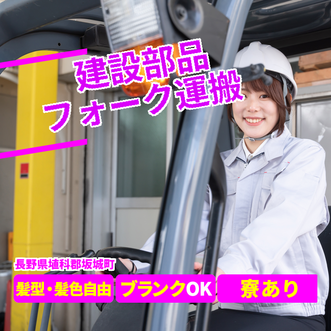 給与詳細 月収例 292,175円 日給例 14,609円 勤務地 長野県埴科郡坂城町 仕事内容 ・建設部品をフォークリフトに乗り部品の運搬や搬入や搬出対応