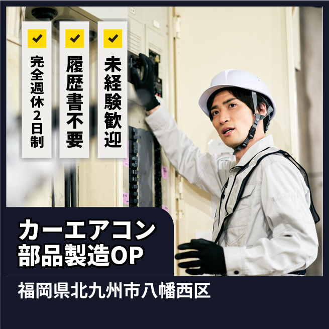 企業 デンソー九州 給与詳細 月収例 300,000円 時給例 1,600円 勤務地 福岡県北九州市八幡西区 仕事内容 自動車カーエアコンの簡単な製造業務