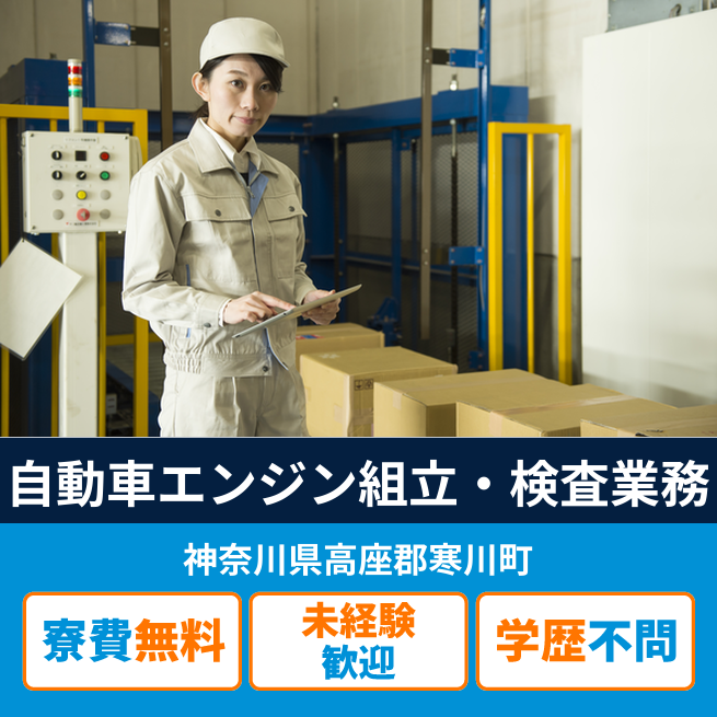 給与詳細 月収例 248,000円 日給例 12,400円 勤務地 神奈川県高座郡寒川町 仕事内容 自動車エンジンの組立作業、機械オペレーター、検査等。