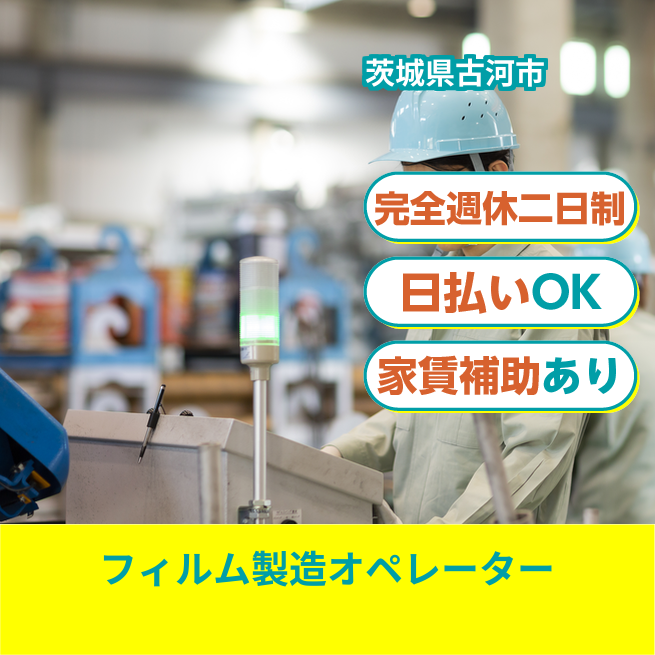 給与詳細 月収例 253,000円 日給例 10,800円 勤務地 茨城県古河市 仕事内容 【プラスチックシート・フィルム、合成繊維製網製品製造加工のOP及びその他付随業務】