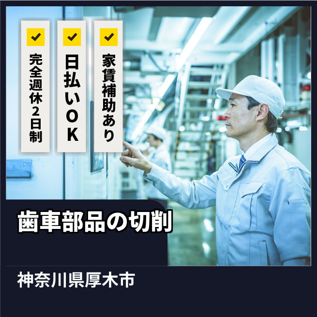 自動車・重機向けの小型~大型歯車など金属部品の製造装置オペレーター業務です。切削機械を用いて加工を行います。切削油など工業用オイルに触れるため、オイルアレルギーが心配な方には不向きです。