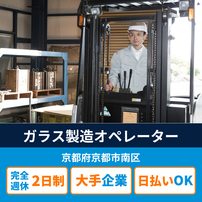 給与詳細 月収例 220,000円 日給例 11,200円 勤務地 京都府京都市南区 仕事内容 自動車用ガラス製造