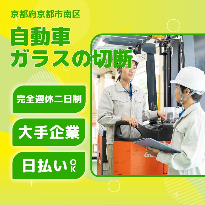 自動車用ガラスの製造に関わります。フォークリフトでガラスをコンベアに載せて運搬し、切断ガラスに合わせて機械設定を変更。切断・印刷後の外観を目視で検査します。