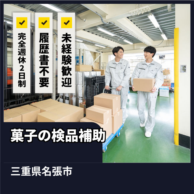 給与詳細 月収例 300,300円 日給例 12,320円 勤務地 三重県名張市 仕事内容 ≪急募!高時給!!大人気のお菓子メーカーでの製造のお仕事♪≫