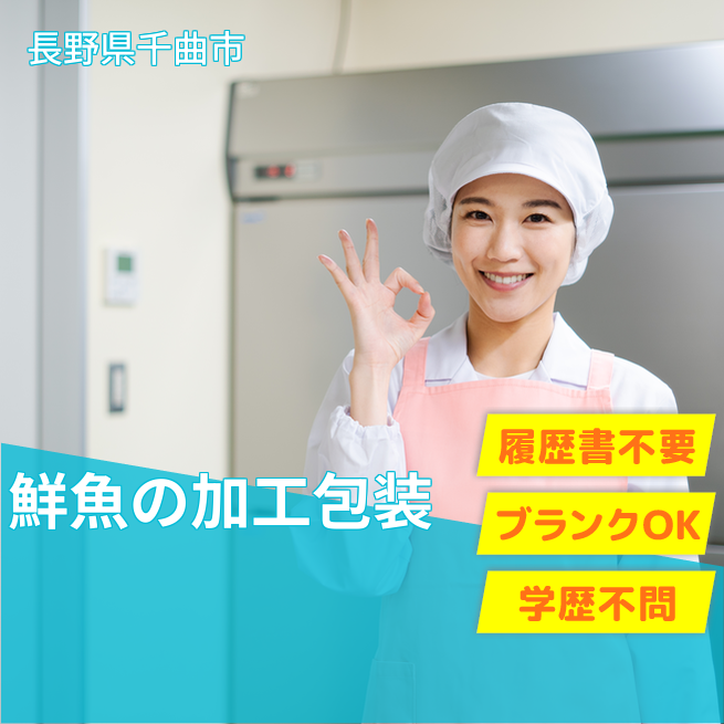 給与詳細 月収例 104,000円 時給例 1,300円 勤務地 長野県千曲市 仕事内容 水産加工スタッフ。