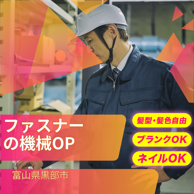 ファスナー部品の組付け・機械OP・検査・梱包のいずれかを担当します。