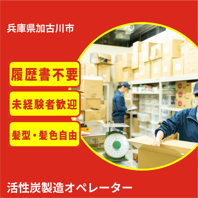 給与詳細 月収例 260,000円 日給例 13,000円 勤務地 兵庫県加古川市 仕事内容 【業務内容】工場内での活性炭製造と関連する作業