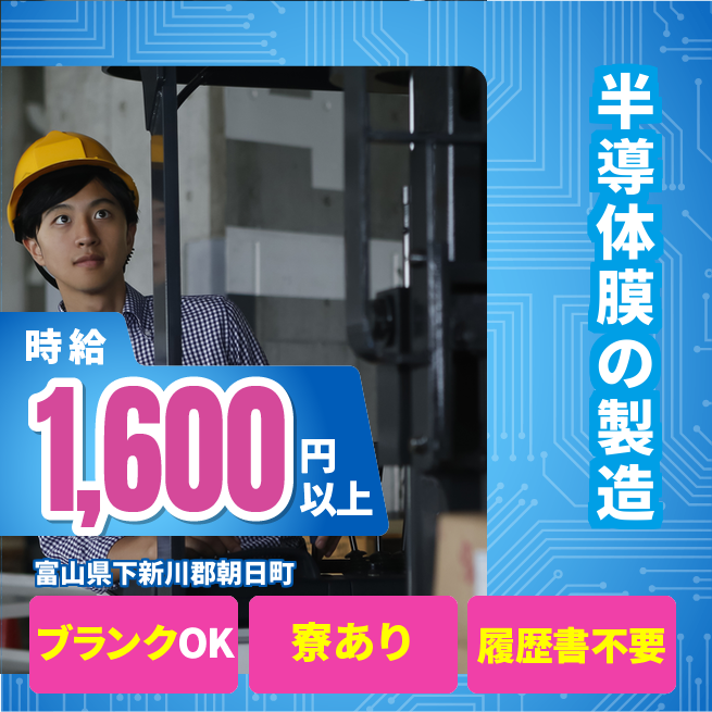 給与詳細 月収例 298,600円 時給例 1,600円 勤務地 富山県下新川郡朝日町 仕事内容 ペットボトル飲料(水・お茶・スポーツ飲料等)や資材のフォークリフトを使った運搬業務。