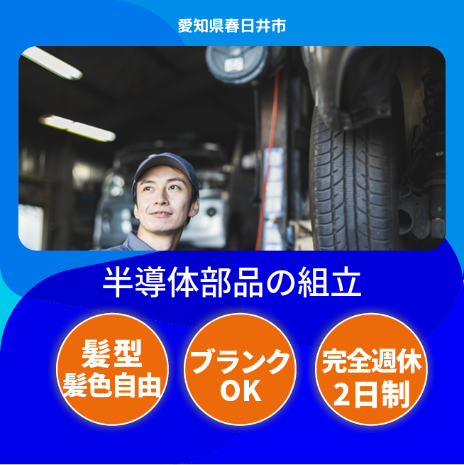 給与詳細 月収例 249,750円 日給例 12,488円 勤務地 愛知県春日井市 仕事内容 クリーンルーム内で機械部品の組立や検査をします。