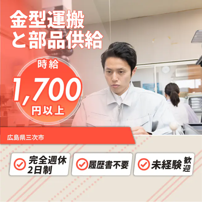 週休2日で充実【金型運搬と部品供給】