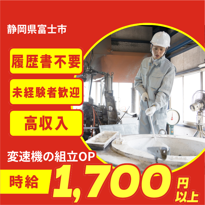 給与例は概算での計算となります。※実際と異なるケースもございます。 交通費 支給あり 応募の流れ 本ページ内<応募する>ボタンより、必要項目をご入力の上、ご応募ください。 勤務地 【勤務地】静岡県富士市- 勤務時間 【勤務地】【勤務時間】