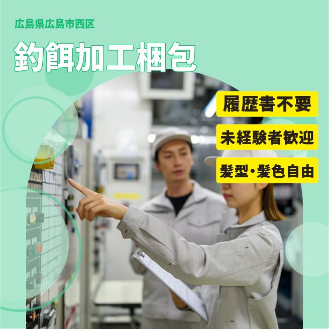 給与詳細 月収例 188,000円 時給例 1,149円 勤務地 広島県広島市西区 仕事内容 釣餌(ゴカイやエビ等)の加工・梱包業務