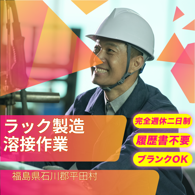 給与詳細 月収例 205,000円 日給例 10,250円 勤務地 福島県石川郡平田村 仕事内容 【業務内容】金属ラックの部品を手動で溶接し、製品を組み立てる作業