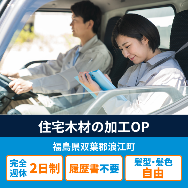 給与詳細 月収例 192,000円 時給例 1,200円 勤務地 福島県双葉郡浪江町 仕事内容 木材加工のオペレーター業務及びフォークリフトを使用しての運搬業務