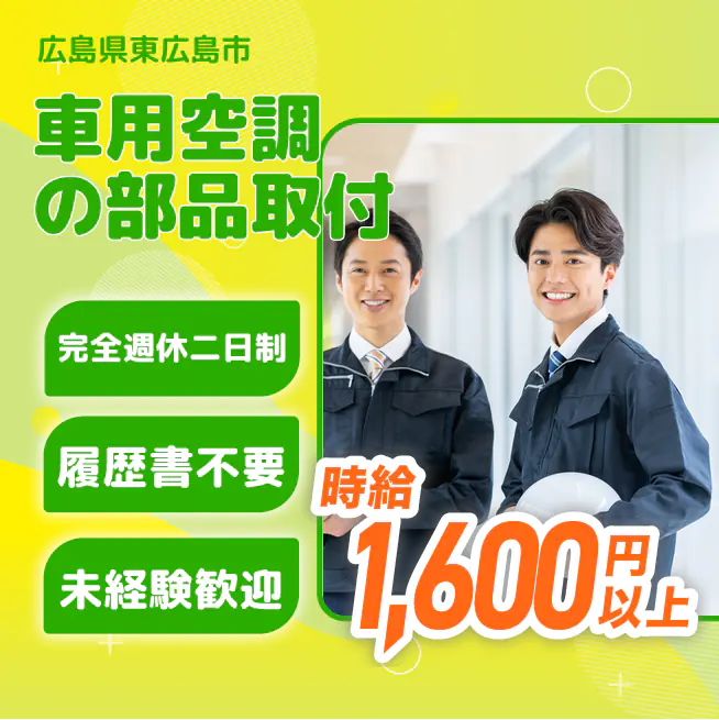 給与詳細 年収例 4,560,000円 月収例 380,000円 勤務地 広島県東広島市 仕事内容 成型機から出てきた製品の検査、ヒーターユニットのケースにダンパーを取り付ける、取り付け後にラックに載せる