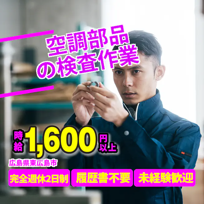 給与詳細 年収例 4,560,000円 月収例 380,000円 勤務地 広島県東広島市 仕事内容 【業務内容】自動車用空調部品の検査と組立作業