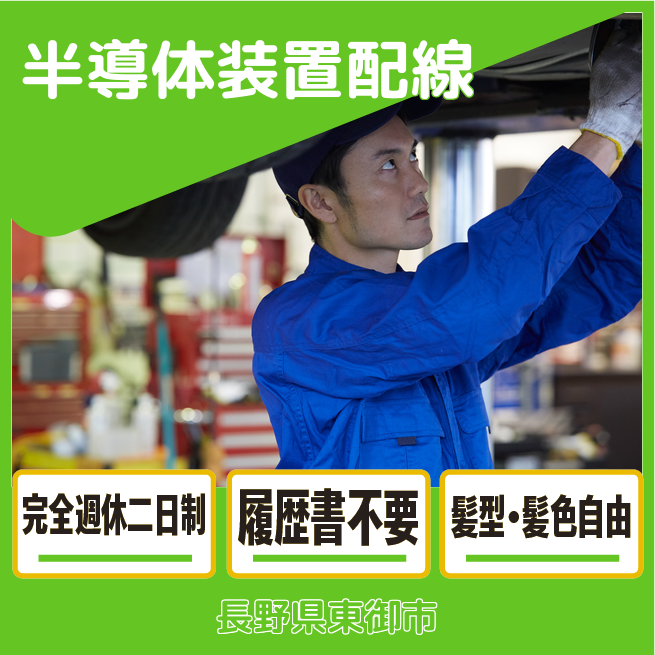 給与詳細 月収例 234,000円 時給例 1,200円 勤務地 長野県東御市 仕事内容 【業務内容】半導体装置の組立と配線作業