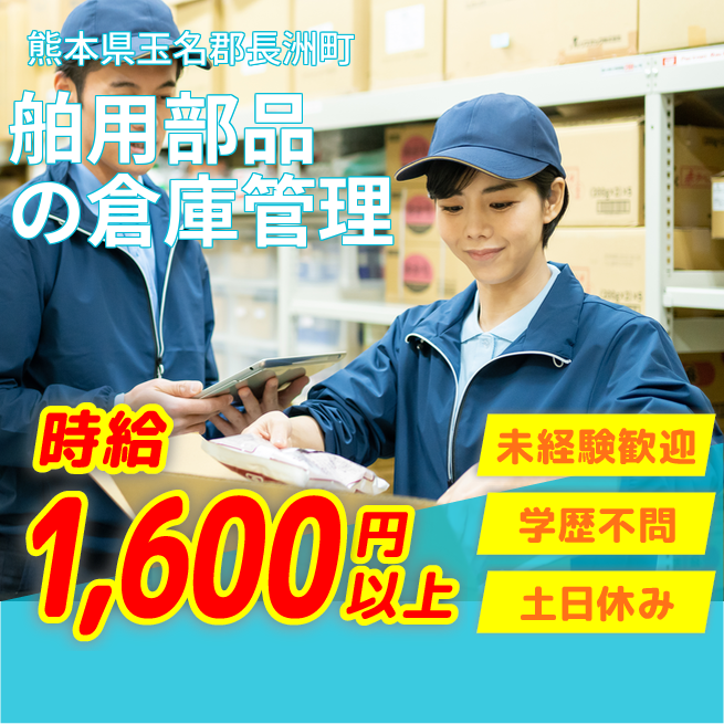 時給例:1600円 交通費 支給あり 応募の流れ 本ページ内<応募する>ボタンより、必要項目をご入力の上、ご応募ください。 勤務地 【勤務地】熊本県玉名郡長洲町有明 勤務時間 【勤務地】8:00~17:00(日勤) 必須資格 経験不問※フォークリフト・クレーン免許ある方優遇 福利厚生 ★社会保険完備、有給休暇制度有、通勤交通費支給、ワンルーム寮完備、赴任旅費支給、車通勤可、送迎バス有、制服貸与 ※勤務先による