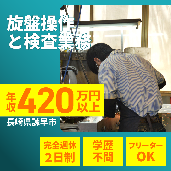 時給例:1700円 交通費 支給あり 応募の流れ 本ページ内<応募する>ボタンより、必要項目をご入力の上、ご応募ください。 勤務地 【勤務地】長崎県諫早市津久葉町 勤務時間 【勤務地】7:50~17:10(日勤) 必須資格 NC旋盤・マシニングセンタ経験者 福利厚生 ★社会保険完備、有給休暇制度有、通勤交通費支給、ワンルーム寮完備、赴任旅費支給、車通勤可、送迎バス有、制服貸与 ※勤務先による