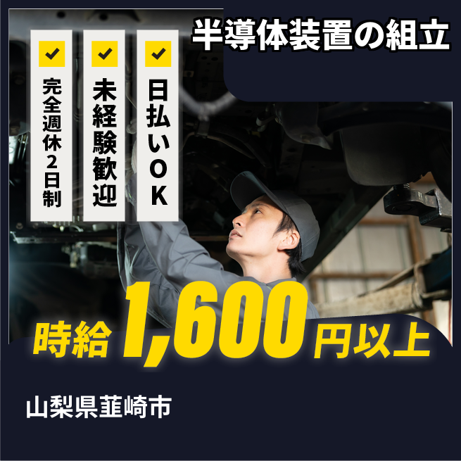 給与詳細 月収例 280,000円 時給例 1,600円 勤務地 山梨県韮崎市 仕事内容 【業務概要】