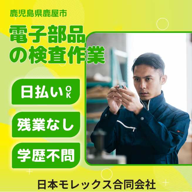給与詳細 月収例 310,325円 日給例 10,800円 勤務地 鹿児島県鹿屋市 仕事内容 電子部品のOM設備オペレーション・検査及び付帯作業
