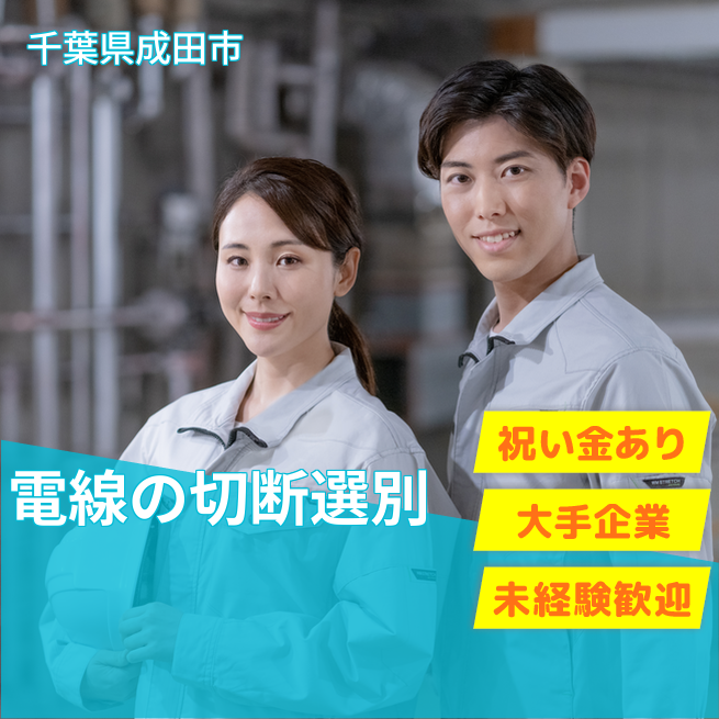 給与詳細 月収例 264,272円 日給例 10,873円 勤務地 千葉県成田市 仕事内容 ①まとまっている電線を機械にセット(5~10kg)